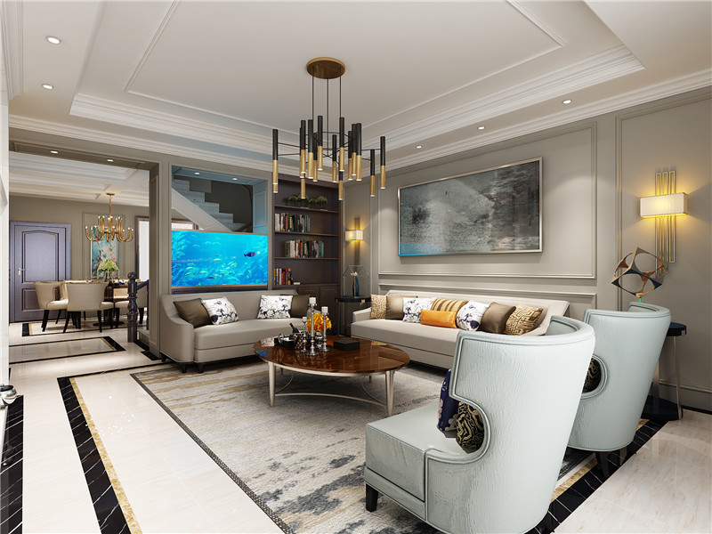 本案例業(yè)主喜歡新古典和美式的感覺,綜合做了混搭,空間為獨(dú)立別墅,風(fēng)格和元素也是盡量選擇的大氣的主題。