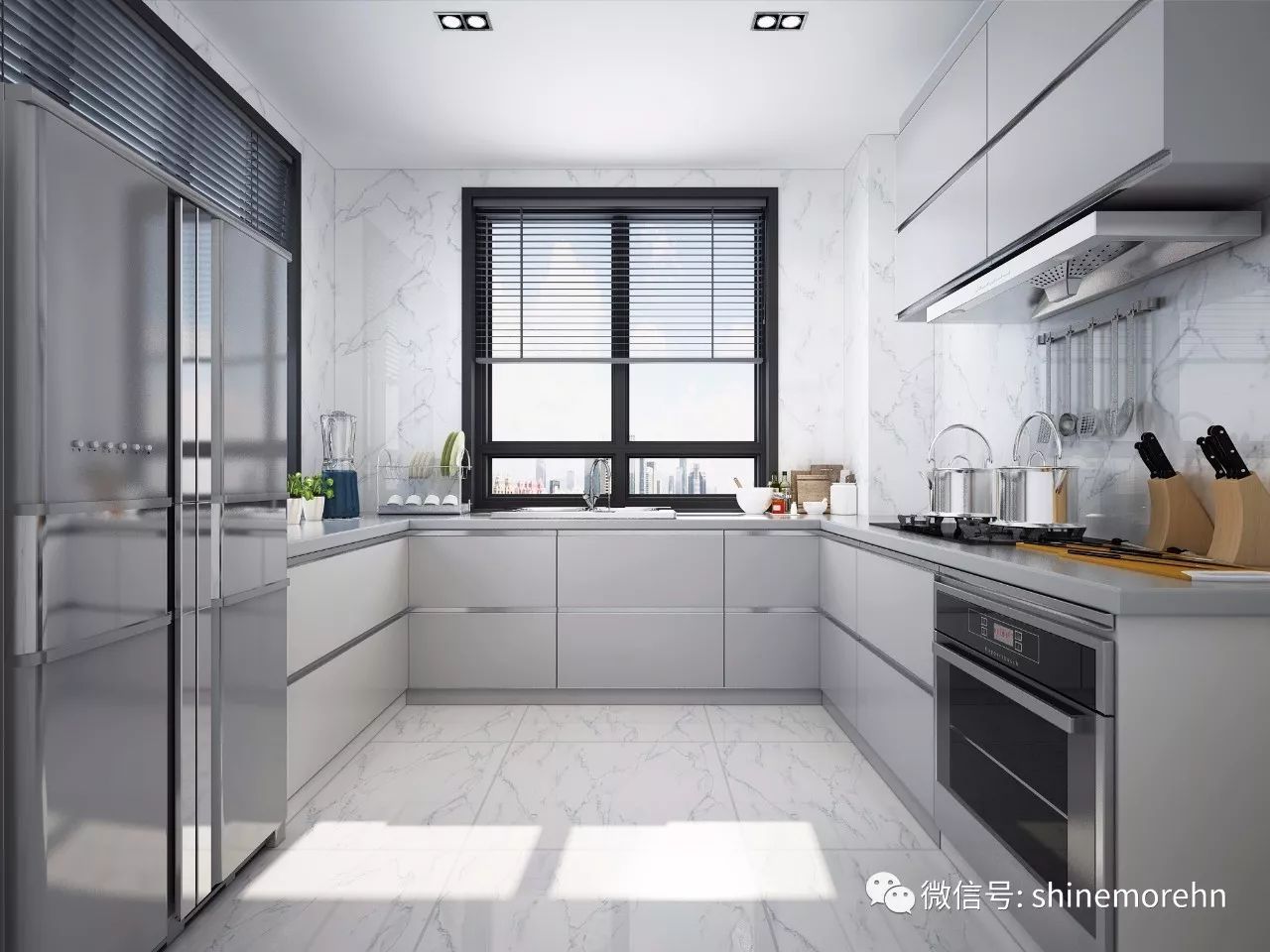 明亮整潔的整體櫥柜設(shè)計,U字型的廚房使用起來更方便快捷,白色烤漆板的襯托,整個廚房大氣而明亮。
