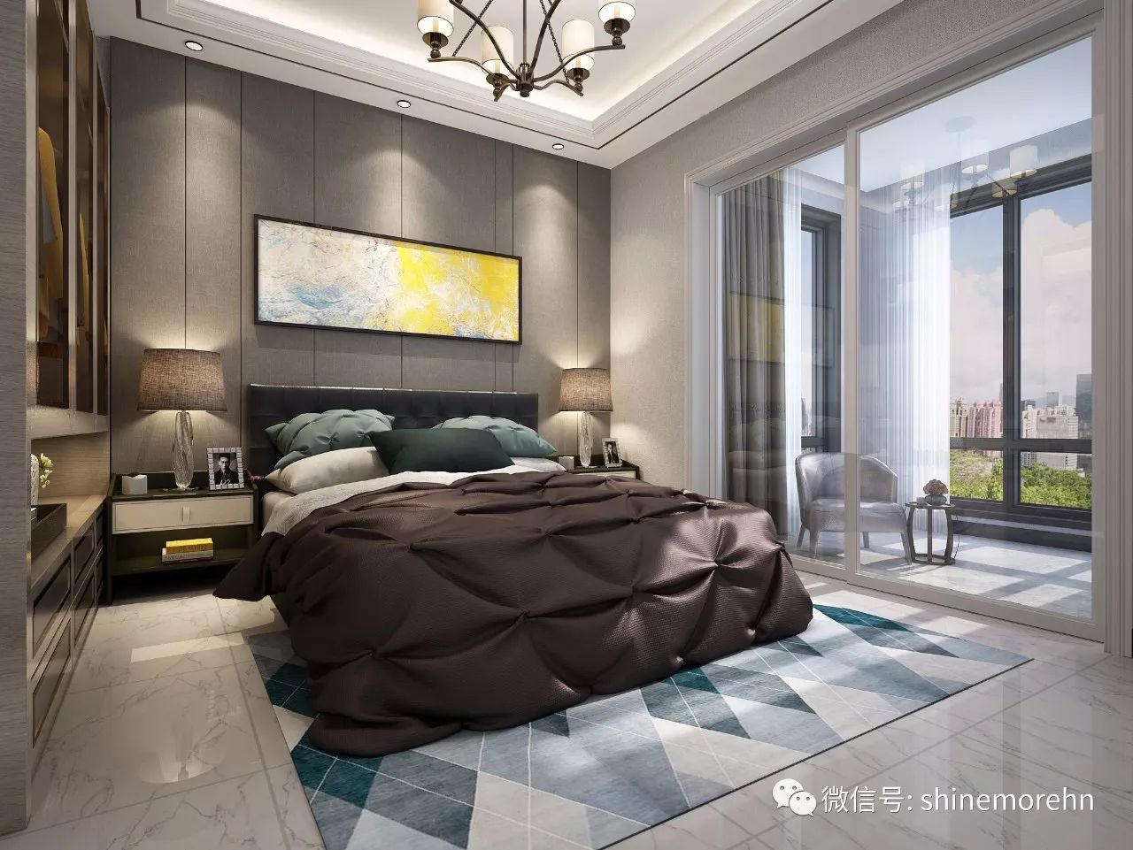 硬包的床頭設(shè)計,在色彩上更顯靜謐的休息空間。