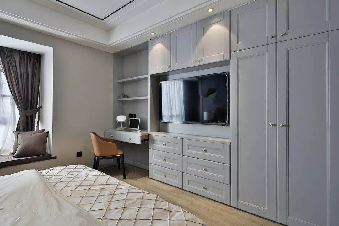 03 衣柜到底做多高?很多人都會有疑問,衣柜盡量做到頂,不要浪費頂部的空間,第一避免頂部落灰,第二增加收納空間,整體性更強!
