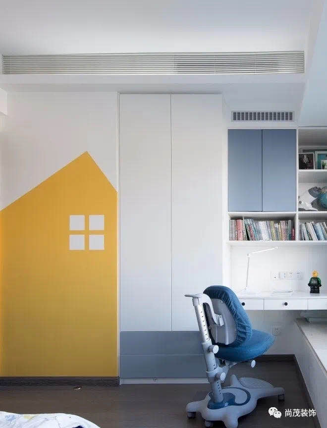 而孩子房間的衣柜則要考慮到孩子的成長,孩子成長速度比較快,過程中衣物大小變化明顯。在設計孩子房間衣柜時要簡單靈活一些,內部可以做一些收納玩具、書本等物品的區域。
