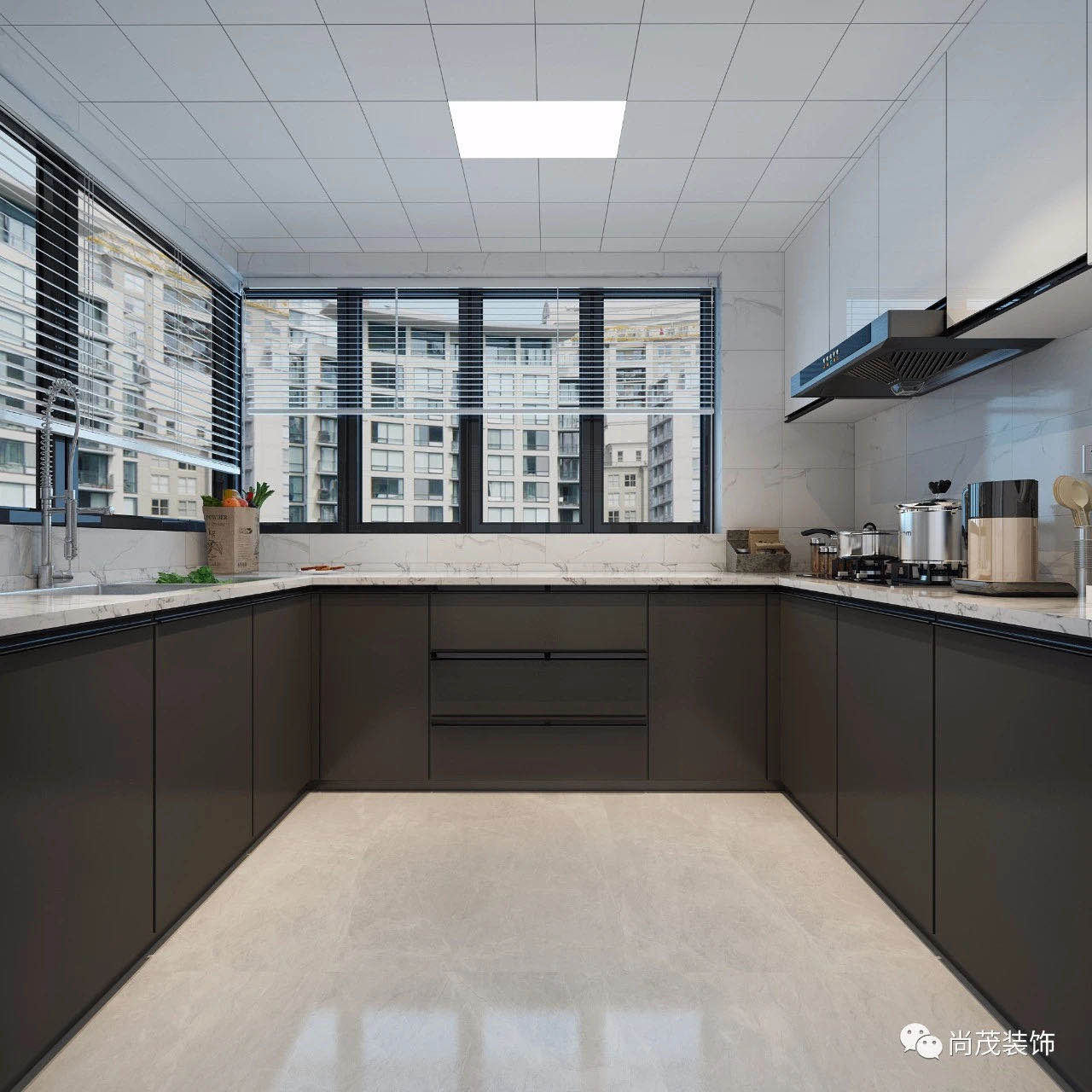 廚房的地柜采用的是高光烤漆柜門來做的,使整個廚房更加亮麗大方,臺面和柜體有著很明顯的區(qū)分,這樣整個廚房更加有質感。
