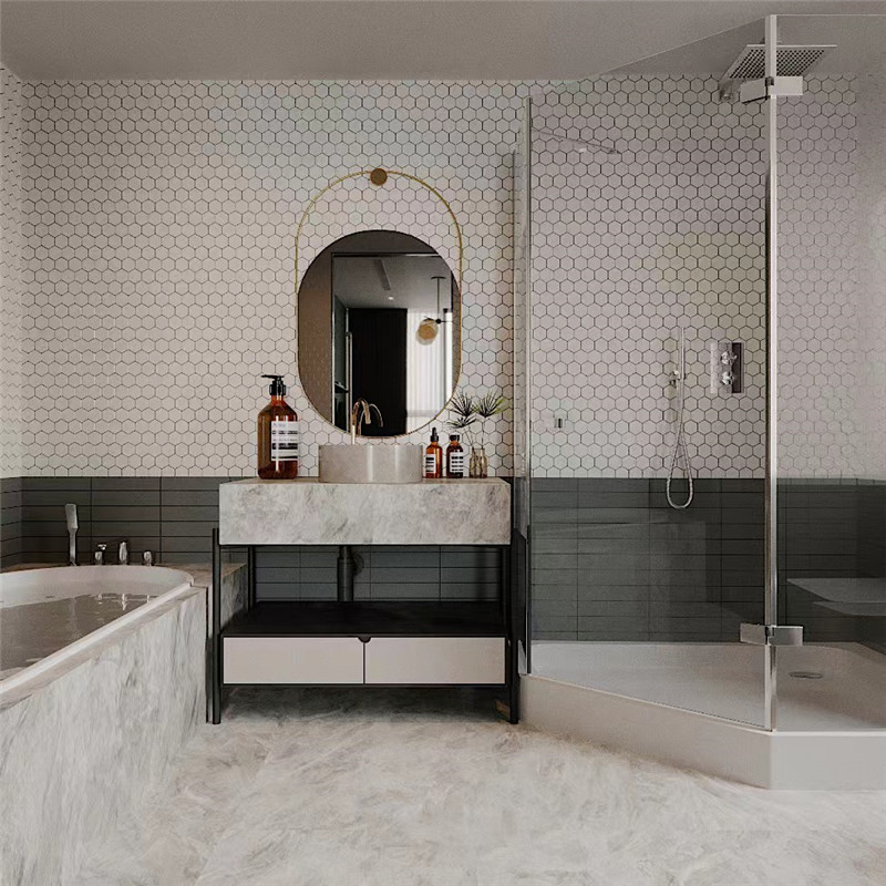 不同色系的瓷磚搭配往往會給人錯落有致的強烈視覺效果。衛(wèi)生間裝個大浴缸,下班后愜意地泡個熱水澡,相信疲憊都散了一半! 08