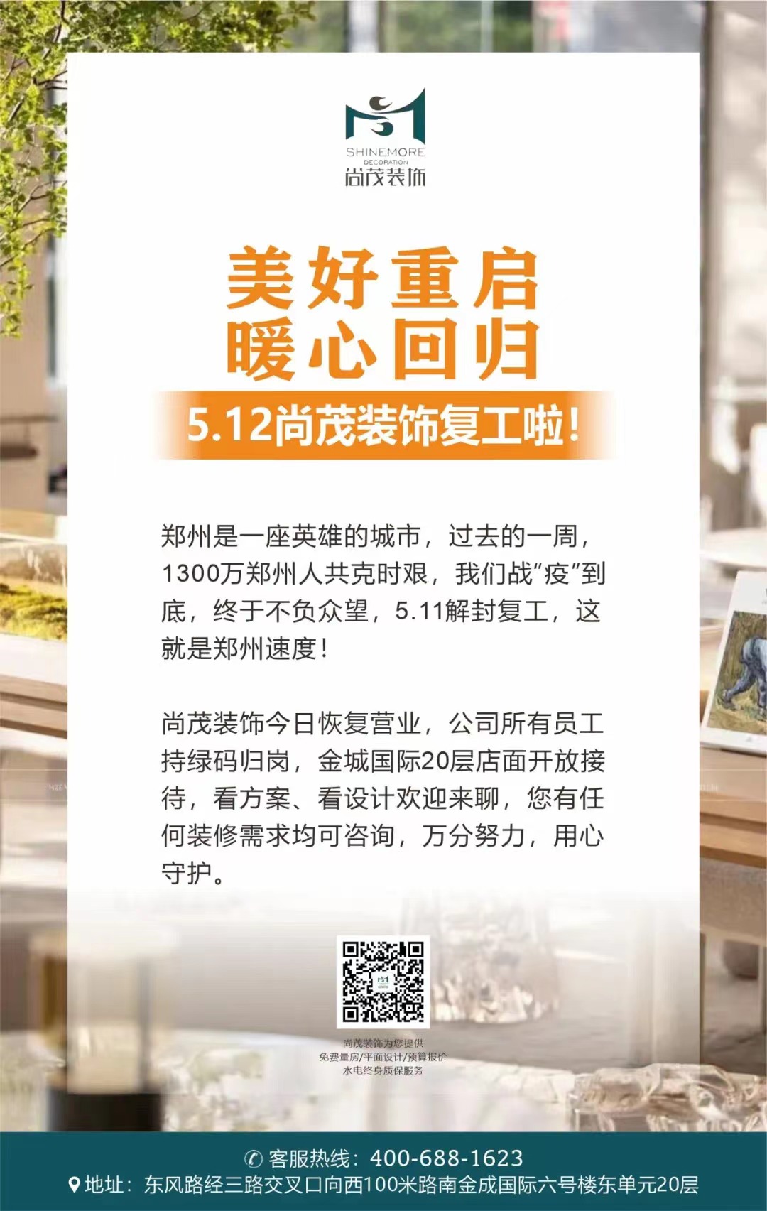 美好重啟,暖心回歸,5.12尚茂裝飾復(fù)工啦!