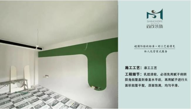 包角處理:如果有倒角的乳膠漆工藝,必須保證倒角的平滑,過度自然,漆面飽滿,這樣才讓人感覺賞心悅目