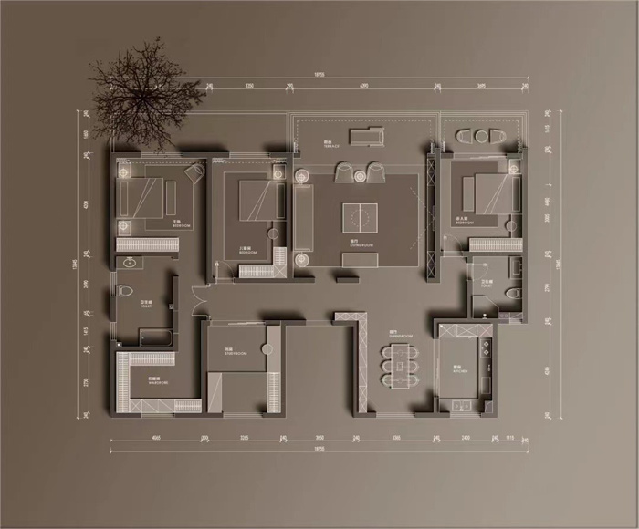 主臥把北向房間納入主臥空間,增加了衣帽間的功能,使主臥更加完善,有大平層該有的功能和體量。