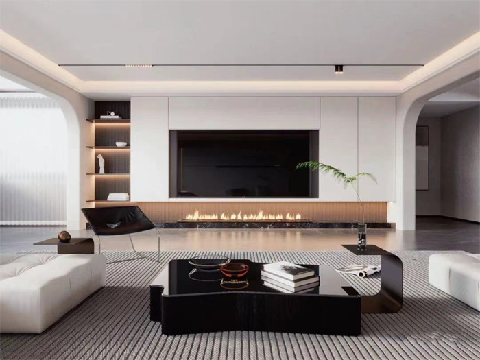 客廳舍棄不必要的元素,追求時尚的輕奢感和現代的簡潔造型。與傳統風格相比,現代輕奢風格用最直白的裝飾語言體現空間和家具營造的氛圍,進而賦予空間個性和寧靜。