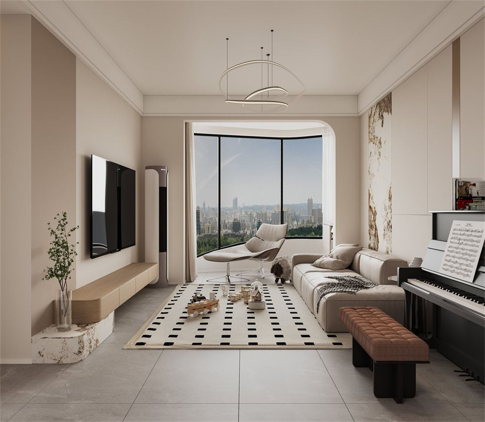 設(shè)計不僅要滿足人們的視覺審美,更要完善使用者對于居家享受的追求,客廳的整體比較緊湊,以冷色和暖色為基調(diào),木材、石材、布藝等元素相融合,演繹出不一樣的魅力。