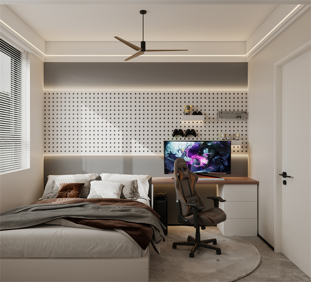 主臥室延續(xù)整體現(xiàn)代時尚的雅致格調(diào),以簡約線條勾勒出舒適的當(dāng)代生活哲學(xué),散發(fā)出舒適優(yōu)雅的都市情調(diào)。