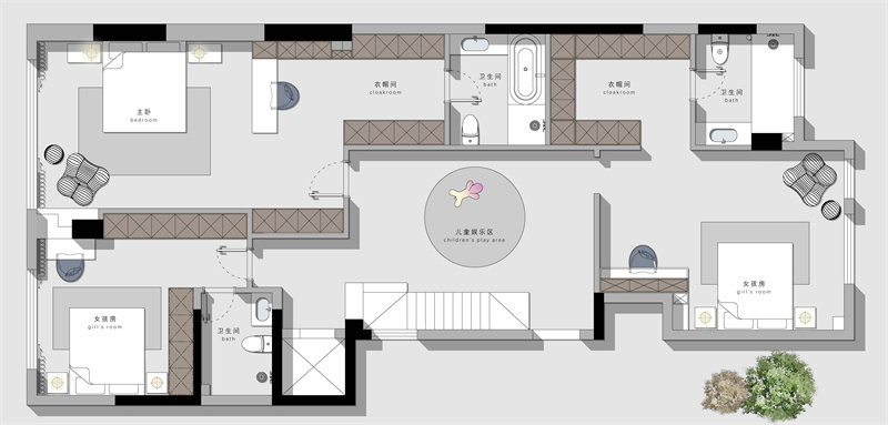 從整體的配飾來(lái)看,小公主的年齡還比較小,設(shè)計(jì)師遵循“以人為本”的設(shè)計(jì)理念,從色彩出發(fā),空出盡可能多的玩耍空間,每個(gè)童年都是獨(dú)一無(wú)二的,希望她每天都會(huì)有一個(gè)好夢(mèng)!