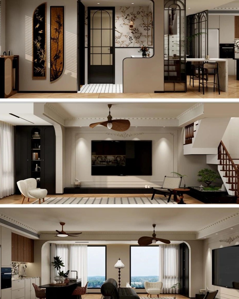 2024年奶油風(fēng)盛行,以奶白色為主調(diào),搭配柔軟材質(zhì),營(yíng)造出溫馨、柔和、甜美的空間氛圍,給人溫暖治愈的視覺(jué)感受 ,滿(mǎn)足人們對(duì)家溫馨舒適的向往。而2025年,風(fēng)格更加多元融合。比如輕法式在保留法式優(yōu)雅元素的同時(shí)簡(jiǎn)化裝飾,融入現(xiàn)代簡(jiǎn)約線(xiàn)條,塑造浪漫、精致且清新的氛圍 ;新中式在傳統(tǒng)中式元素與現(xiàn)代設(shè)計(jì)手法的融合上更加深入,空間布局對(duì)稱(chēng),家具古樸典雅,盡顯東方文化底蘊(yùn)與時(shí)尚韻味。 二、空間布局:注重靈活開(kāi)放與功能細(xì)分
