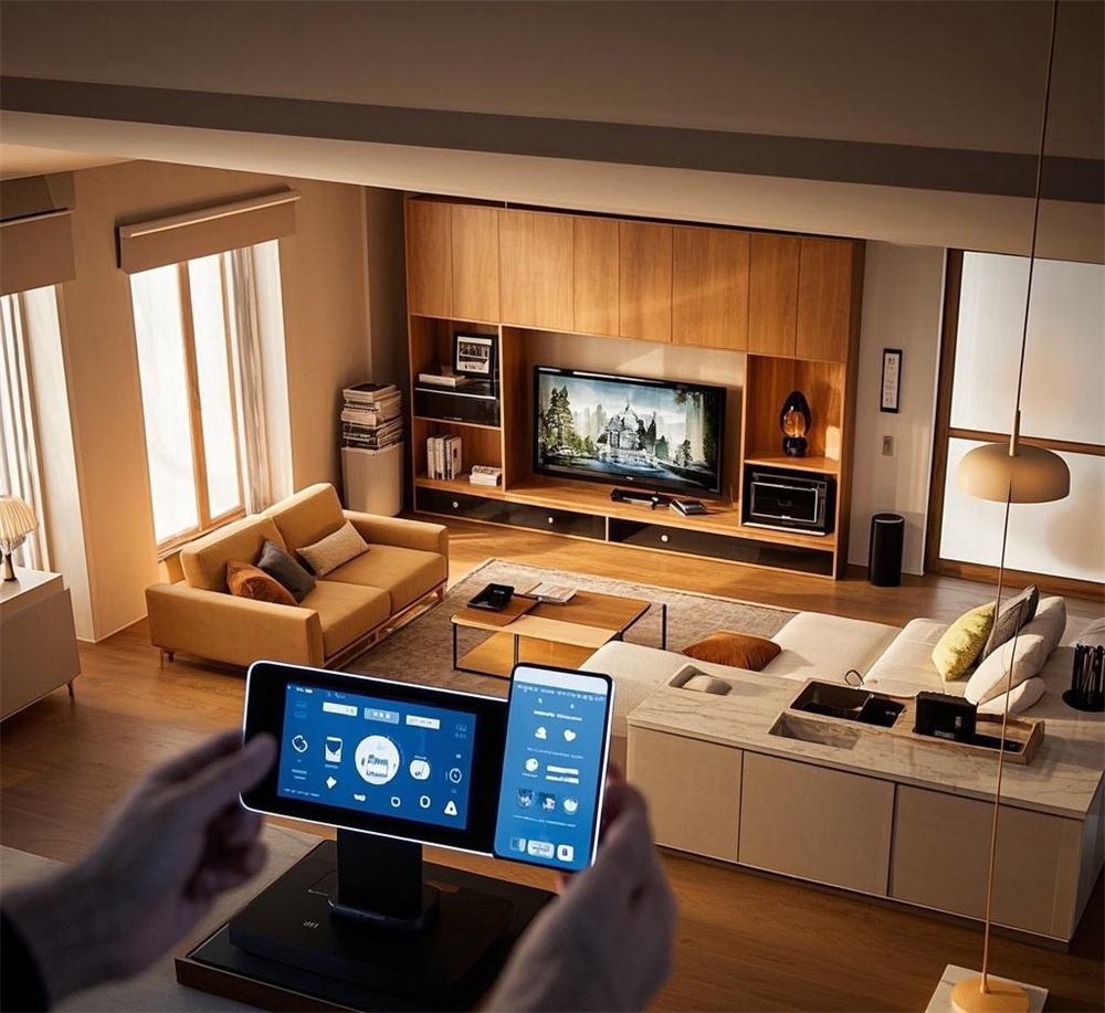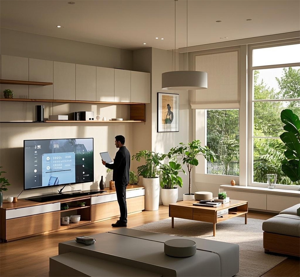 2024年流行低飽和度色彩,像莫蘭迪色系,營(yíng)造寧?kù)o柔和的家居氛圍。2025年色彩搭配更大膽,撞色設(shè)計(jì)開(kāi)始流行。比如黃色與藍(lán)色、黑色與紅色等對(duì)比強(qiáng)烈的色彩組合,為空間注入活力與個(gè)性,展現(xiàn)主人獨(dú)特品味。 四、智能應(yīng)用:從單品智能到全屋智能生態(tài)
